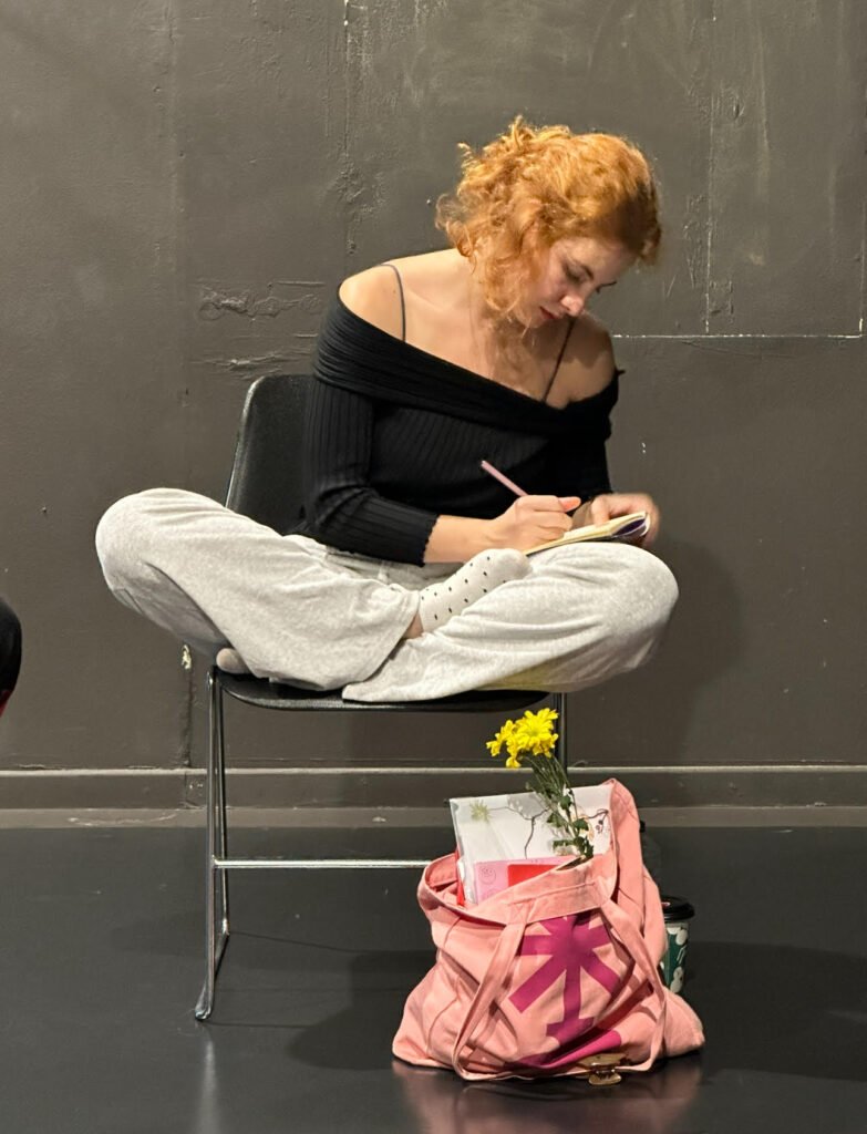 Η Ελίνα Παντελεμίδου είναι ηθοποιός. Θα τη συναντήσεις συχνά με ένα μεγάλο μαύρο σακίδιο στην πλάτη, κάπου ανάμεσα στον Πειραιά και το κέντρο, σε εκείνη την καθημερινή διαδρομή που γίνεται σχεδόν τελετουργία. Της αρέσει το φαγητό, ο χορός και η μαγειρική — όχι όμως και το καθάρισμα, όπως λέει γελώντας. Πρόσφατα ξεκίνησε μαθήματα βιολιού· «δύσκολο αλλά αστείο ταυτόχρονα», όπως το περιγράφει, μια άσκηση υπομονής και παιχνιδιού μαζί.